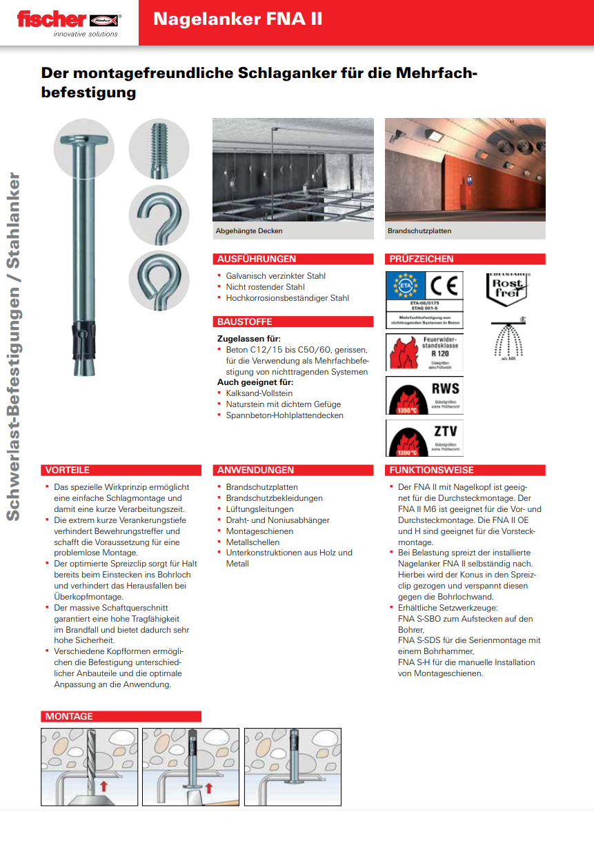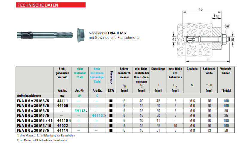 FISCHER Nagelanker mit Gewinde und Flanschmutter, FNA II 6x30 Stahl verzinkt M8x50 K:5