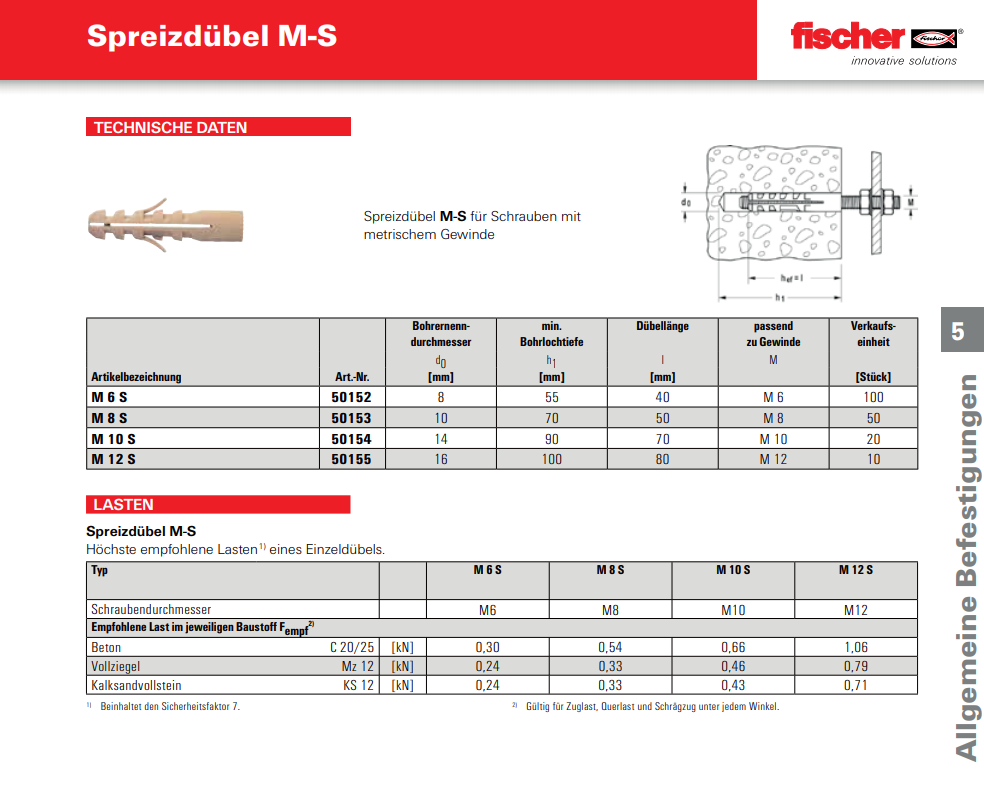 FISCHER Nylondübel M-S, M-S Nylon M10 S