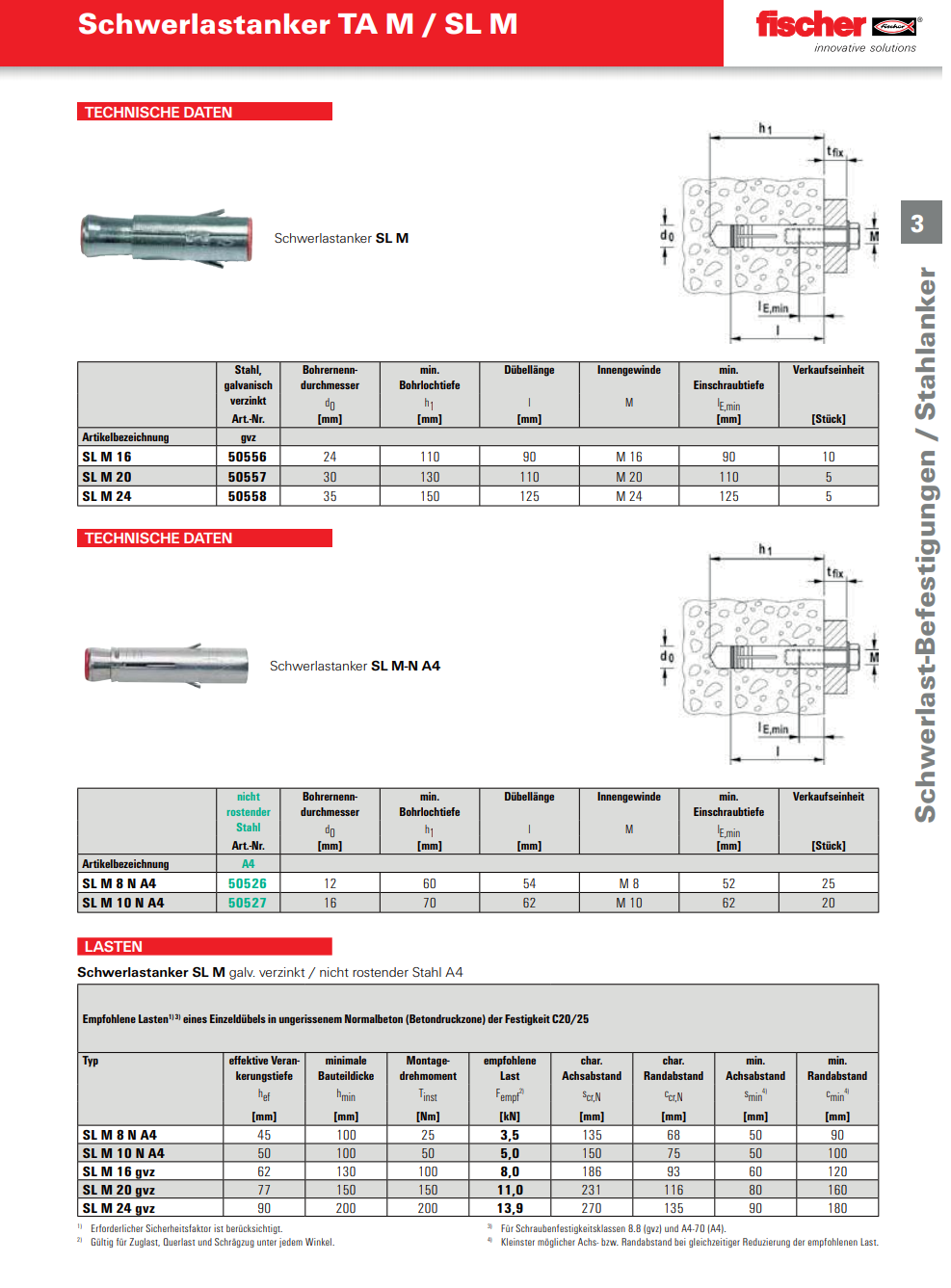 Fischer Schwerlastanker Innengewinde, SL M Stahl verzinkt M16x90
