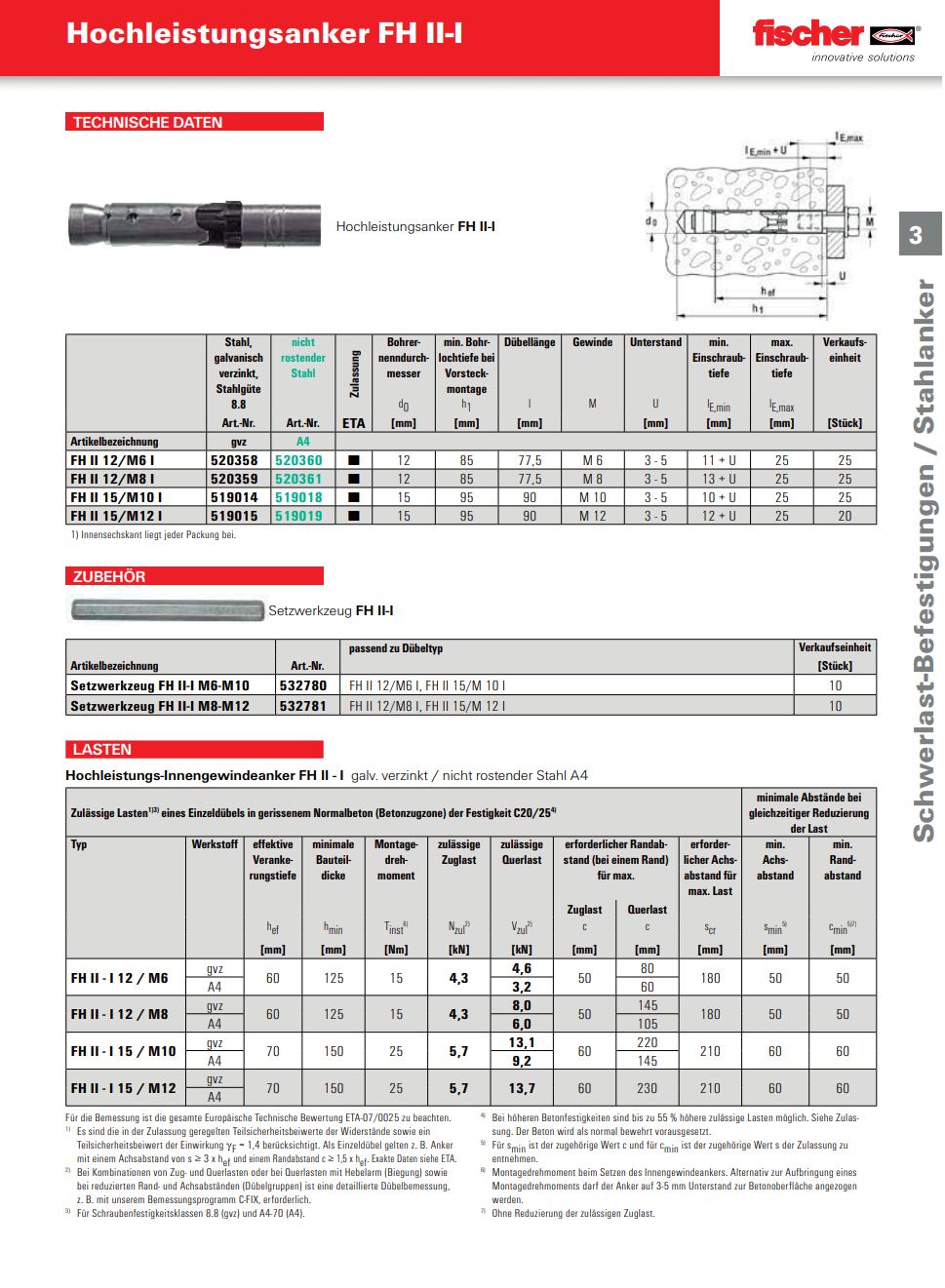 FISCHER Hochleistungsanker mit Innengewinde, FH II-l Stahl verzinkt M6x77,5