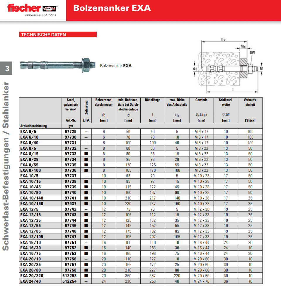 FISCHER Express-Anker mit Aussengewinde, EXA 20/10 Stahl verzinkt M20x127 K:10