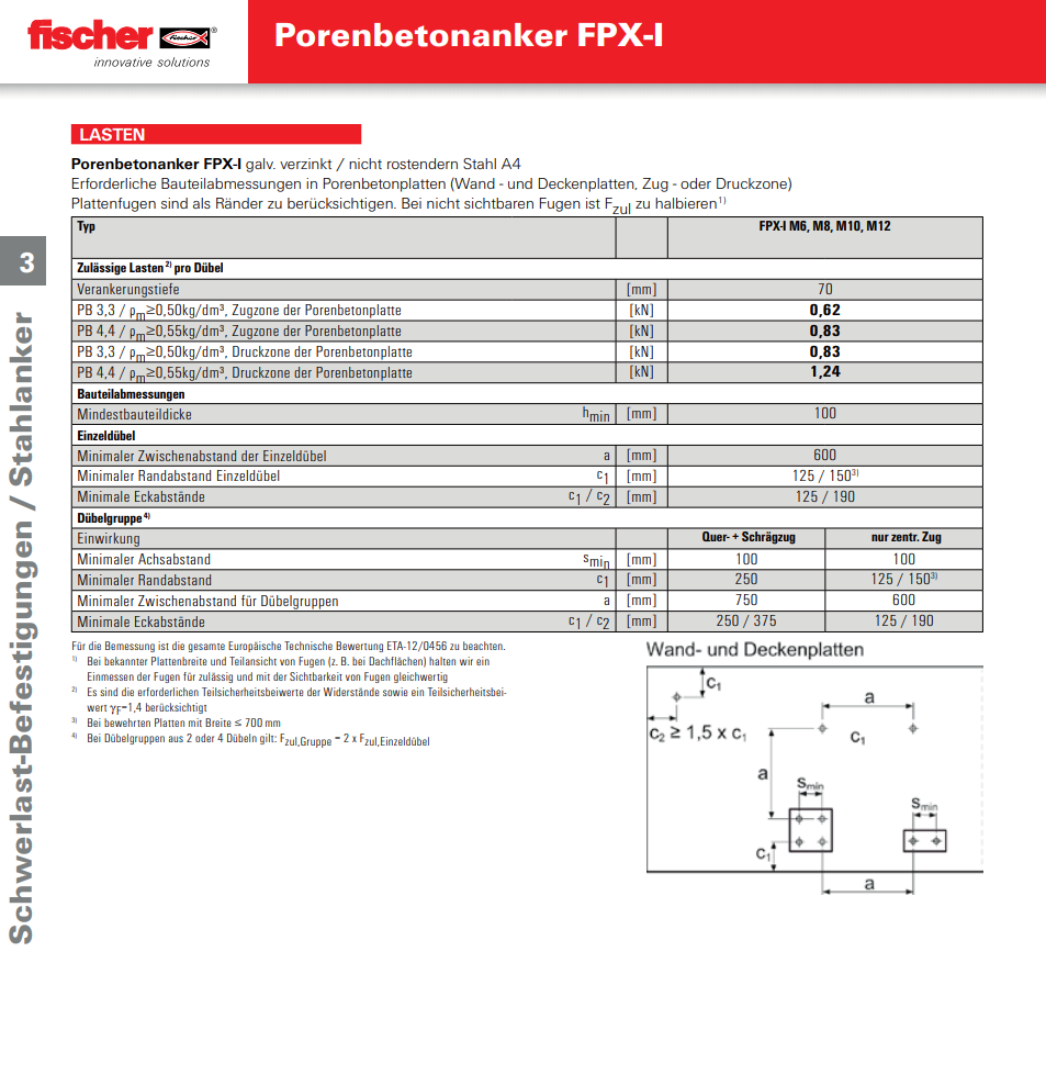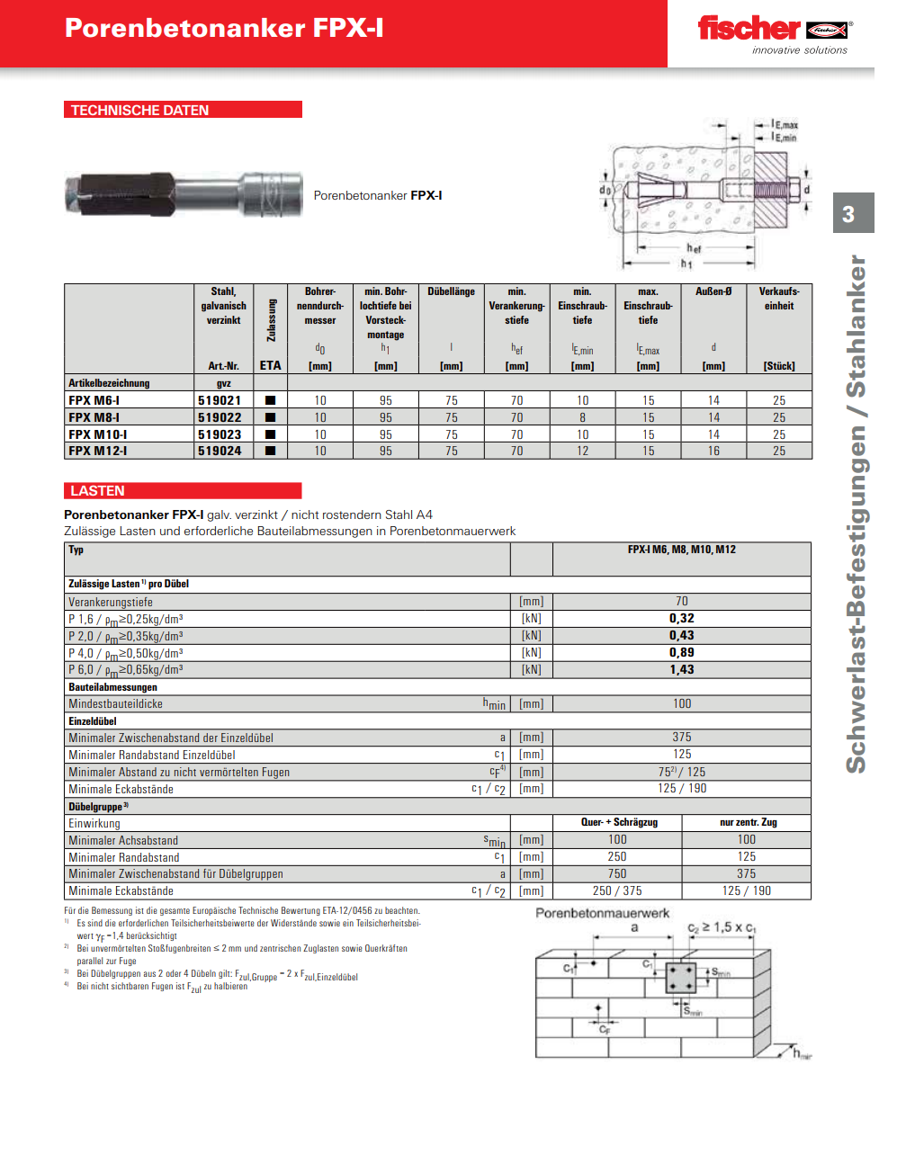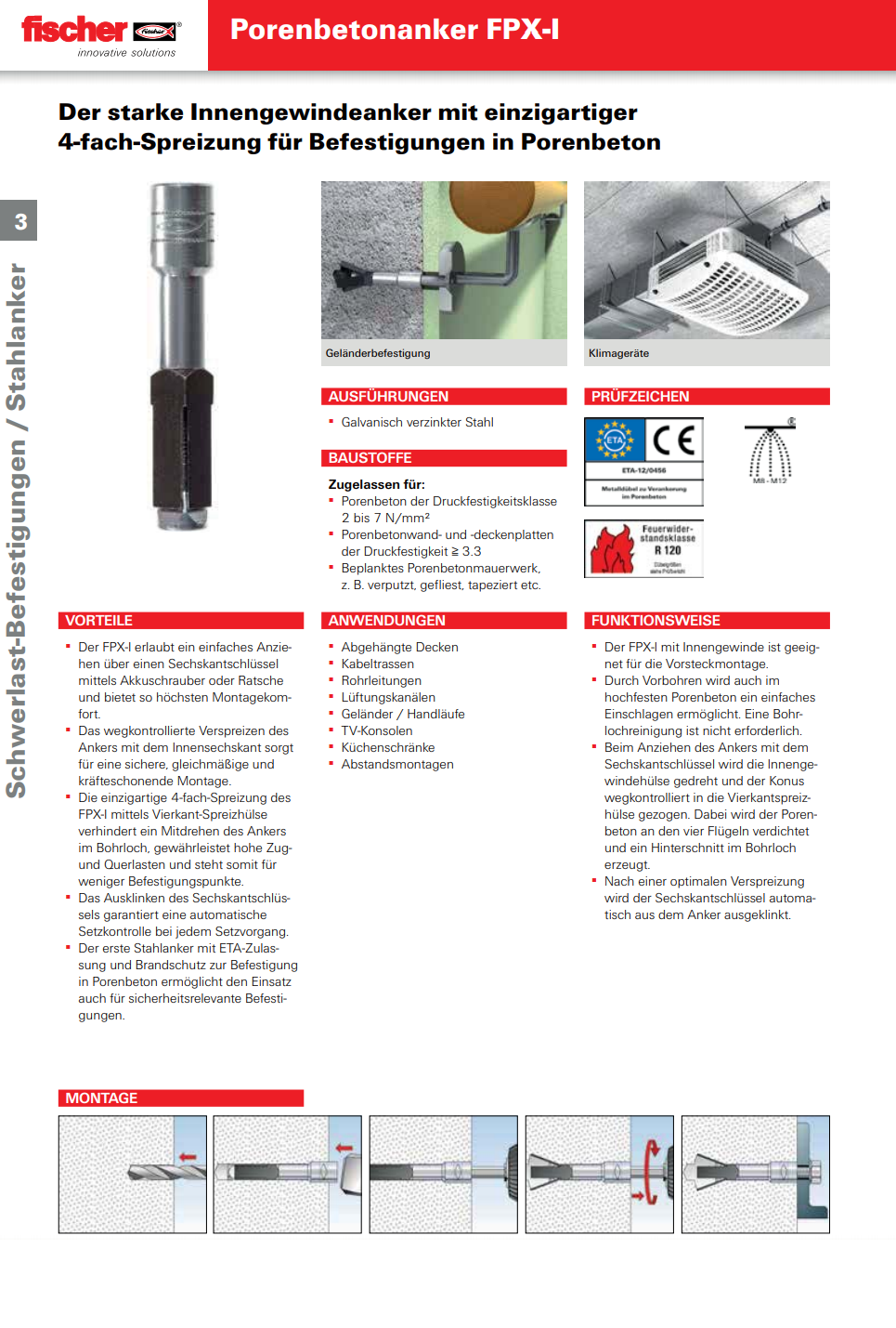 Fischer Porenbetonanker Innengewinde, FPX-I Stahl verzinkt M12x75