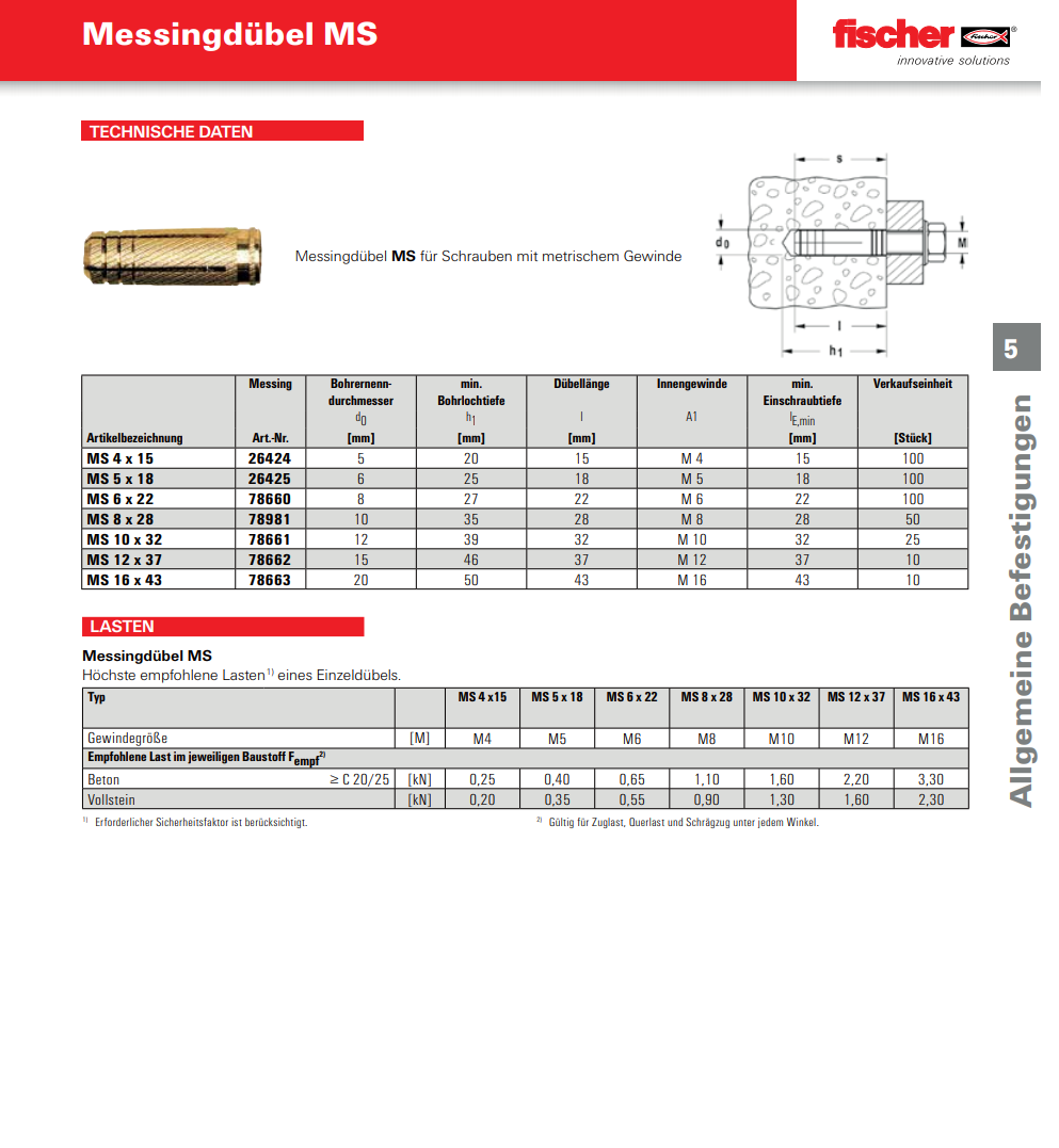 FISCHER Messingdübel MS, MS Messing M10x32