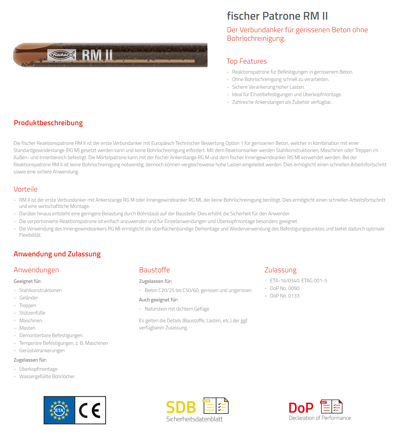 FISCHER Mörtelpatrone, RM II 10 10x90