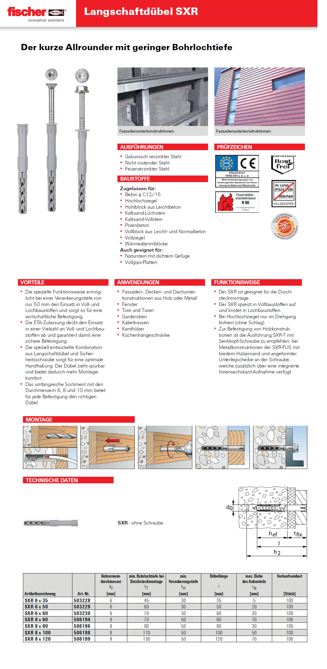 FISCHER Langschaftdübel SXR, SXR Nylon 6x60 K:30