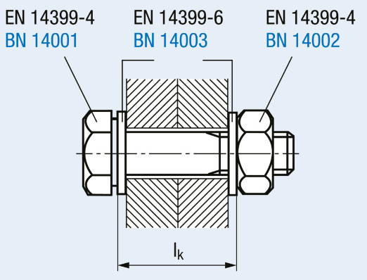 FRIEDBERG HV-Garnituren 1Sch.-1Mu.-2 Scheib., EN14399 10.9 feuervz. M22x75 K:39-43 m. 2 Scheib.