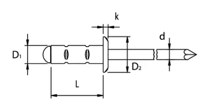 Blindnieten Flachkopf schwarz lackiert RAL9005, Aluminium-A2 rostfrei 3,2x9,5 K:1,5-6,5