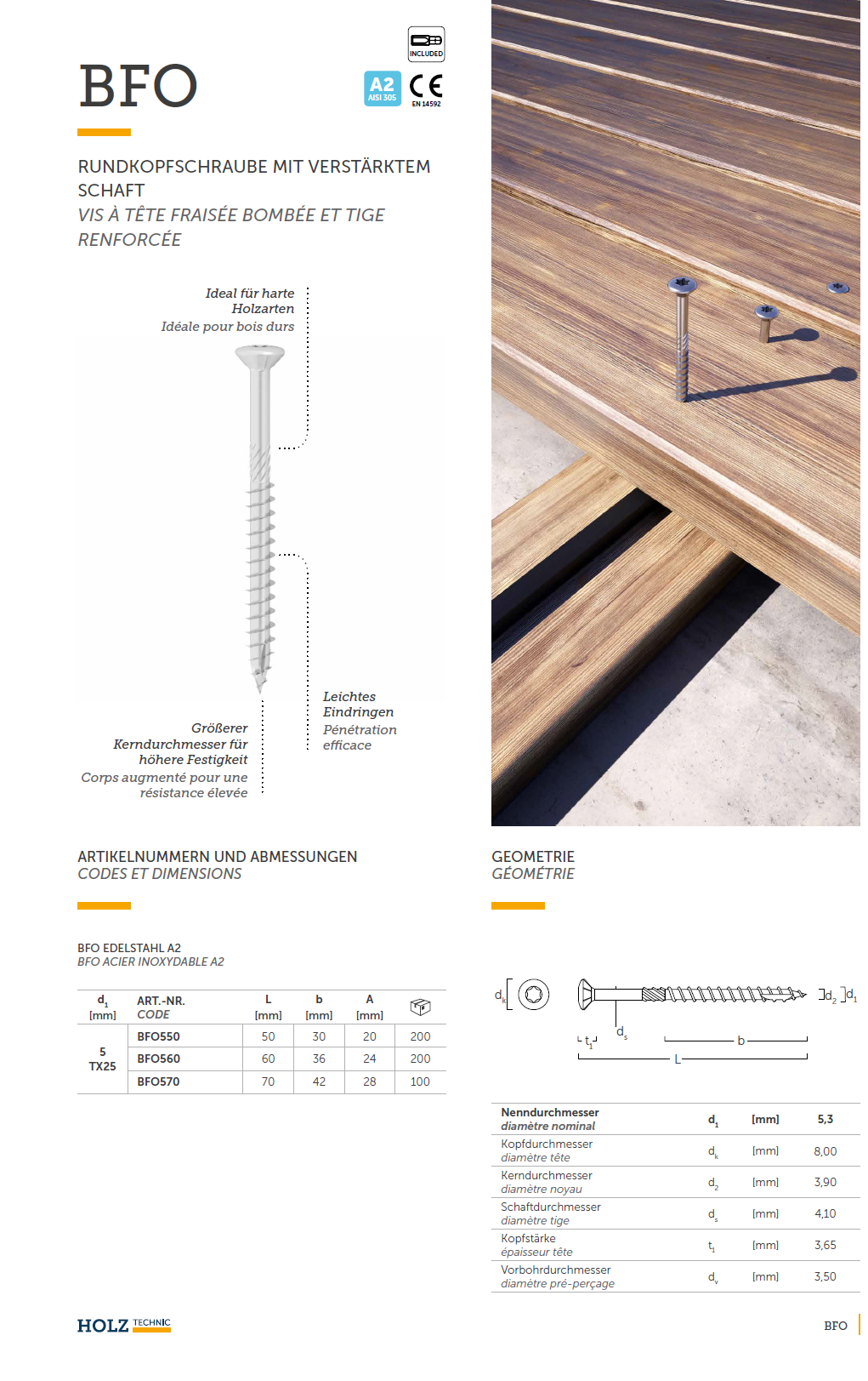 Rundkopf-Terrassenschrauben TX, Typ BFO A2 AISI305 5x60