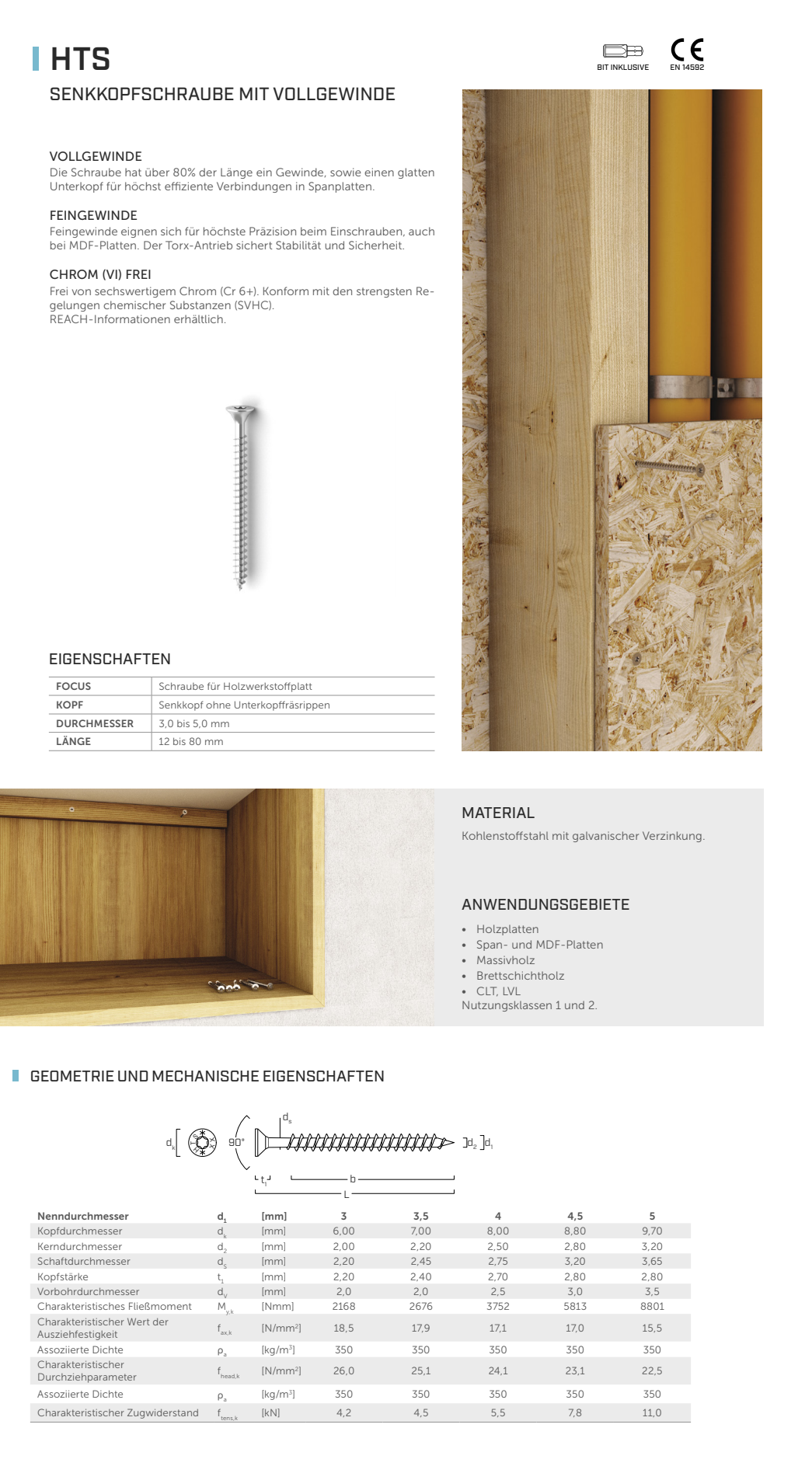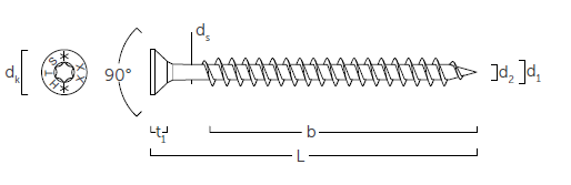 Senk-Holzbauschrauben mit Vollgewinde TX, Typ HTS Stahl verzinkt 3,5x40
