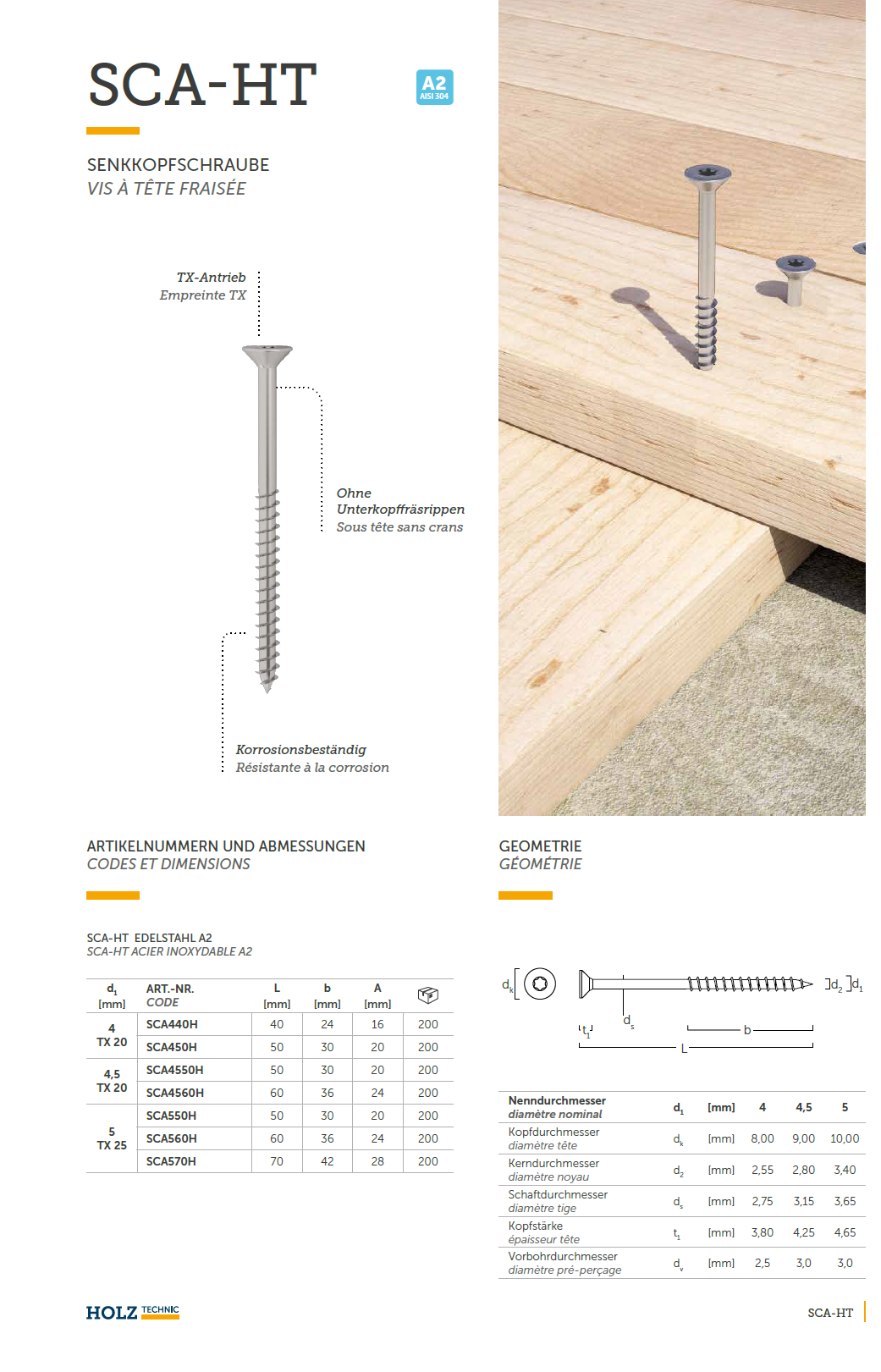 Senkkopf-Terrassenschrauben TX, Typ SCA A2 rostfrei AISI304 5x50