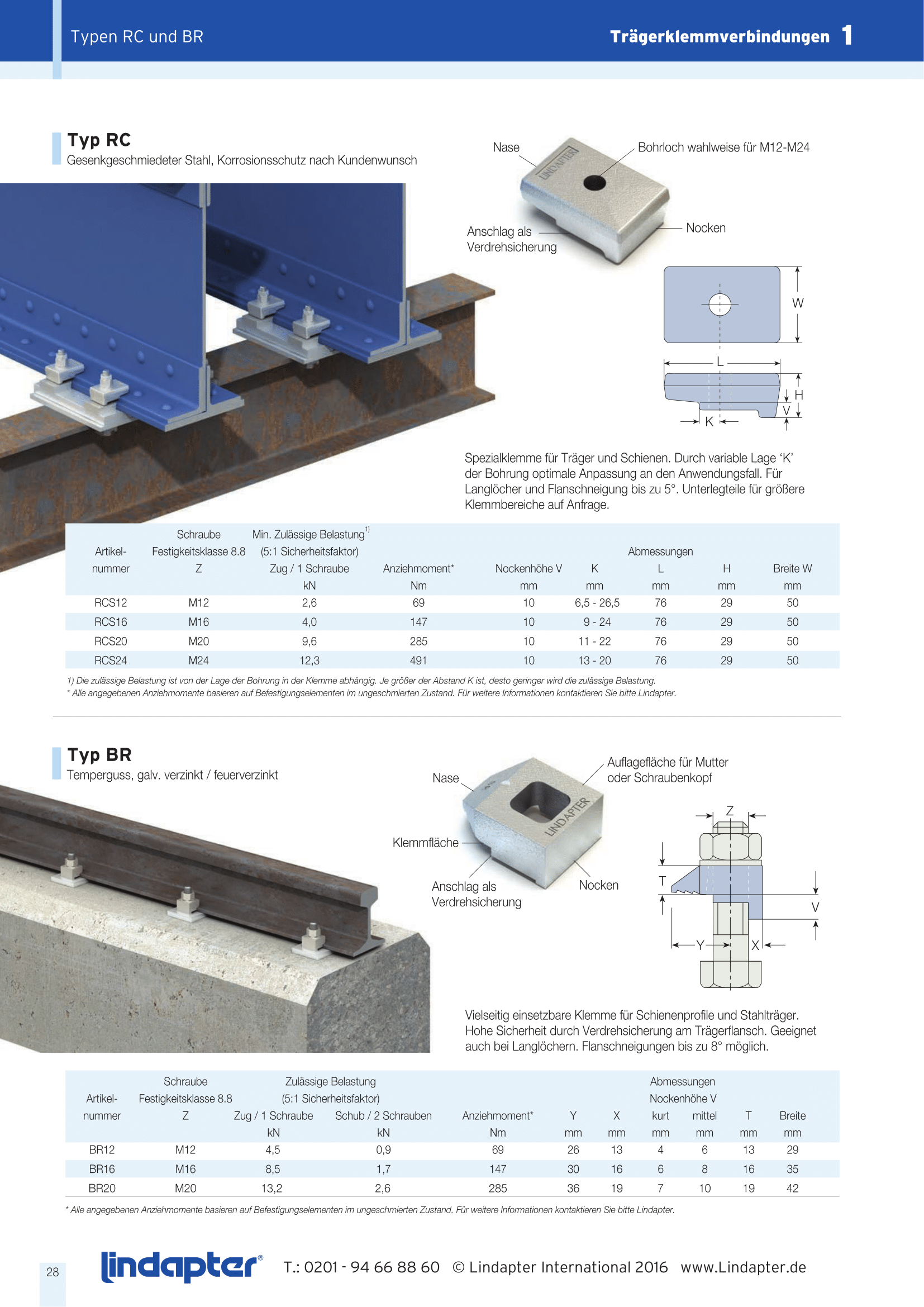 Klemmteile Lindapter, Typ BR Temperguss verzinkt M20 mittel