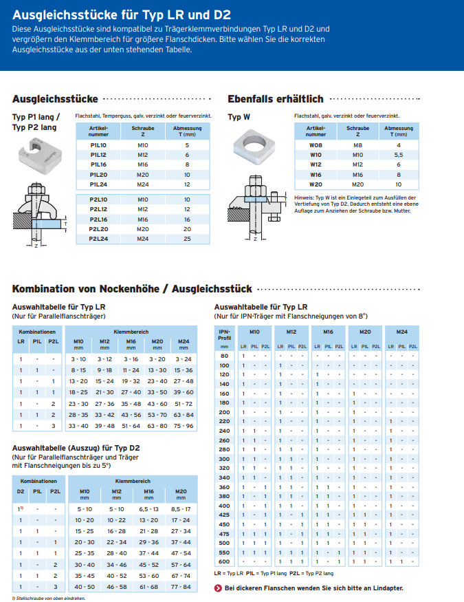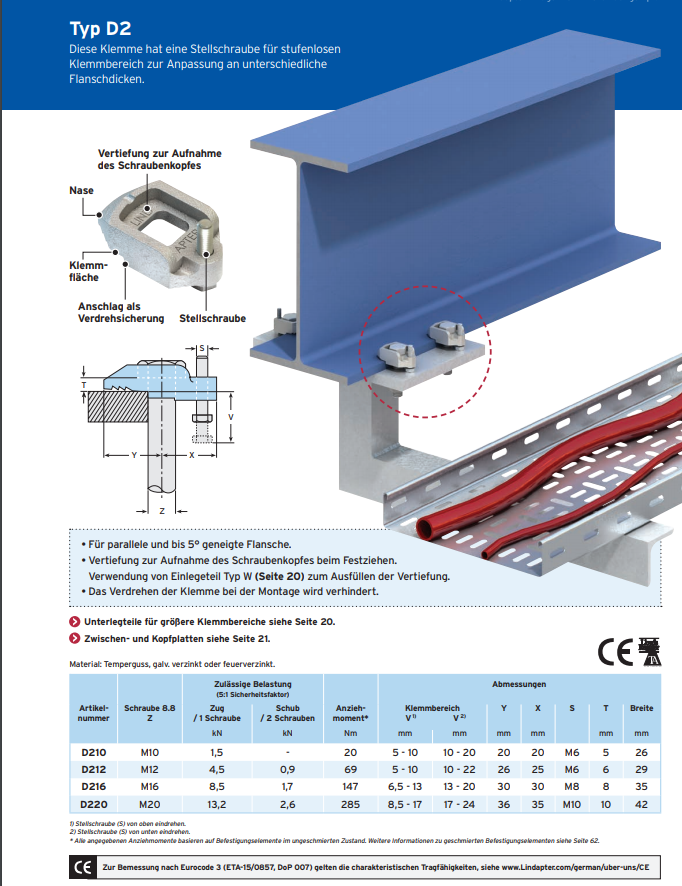 Klemmteile Lindapter, Typ D2 Temperguss verzinkt M12