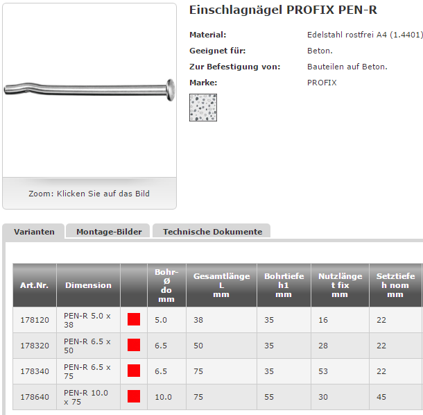 Einschlagnägel, PEN-R A4 (1.4401) rostfrei 10x75 K:30