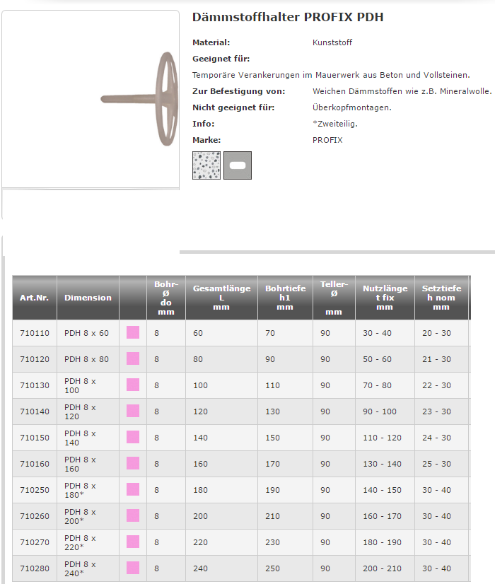 Dämmstoffhalter Teller ø90mm, PDH-zweiteilig Kunststoff 8x200 K:160-170