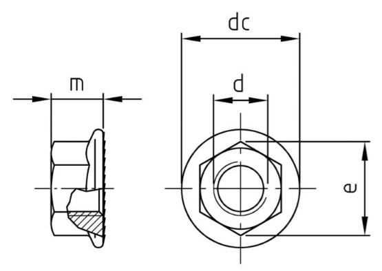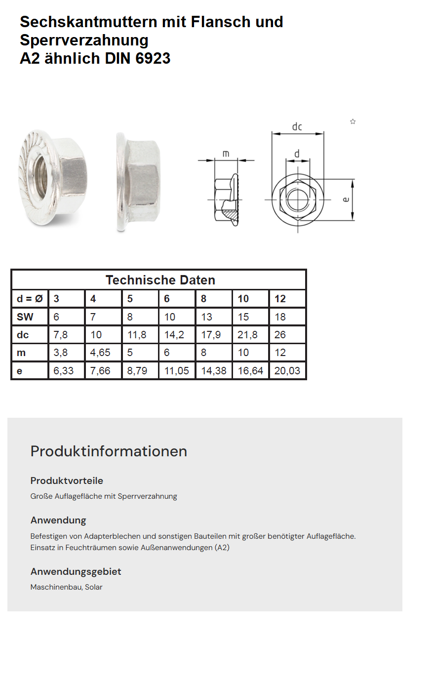 Sechskantmuttern mit Flansch + Unterkopfzahnung, ähnlich DIN6923 A2-70 rostfrei M12