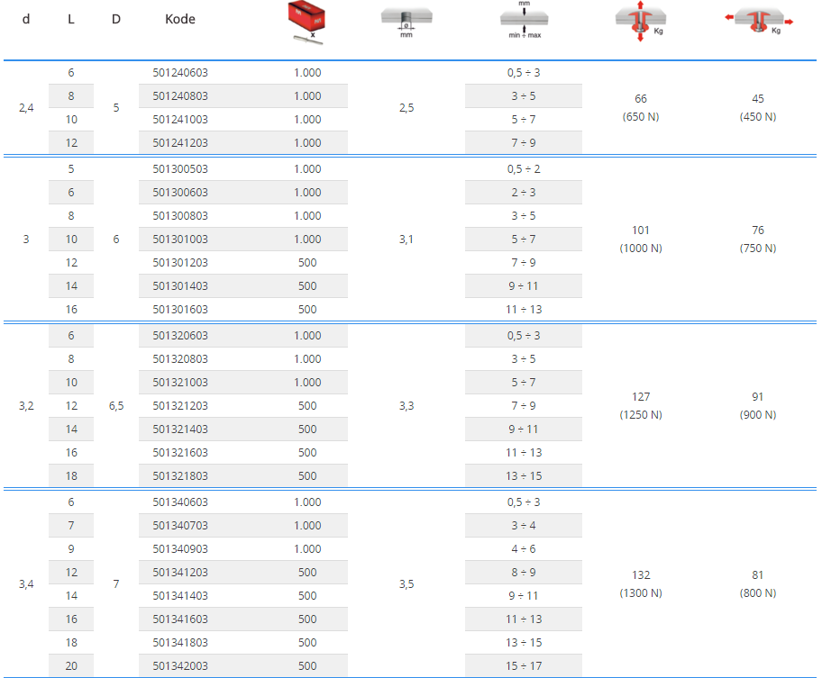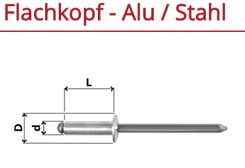 Blindnieten Flachkopf, BN-FL-ST Aluminium-Stahl 6,4x40 K:30-35