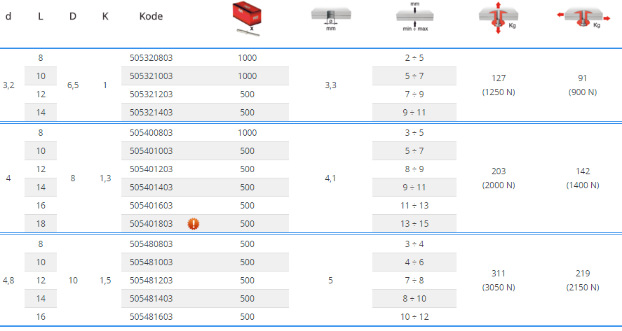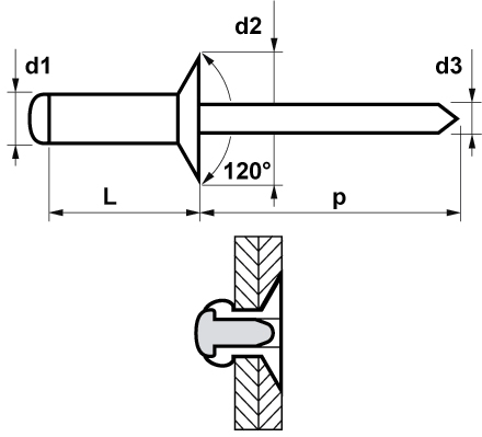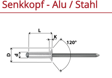 Blindnieten 120° Senkkopf, BN-SK-ST Aluminium-Stahl 5x25 K:17-21