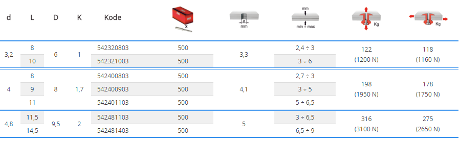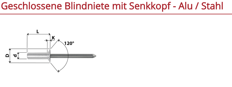 Dichtblindnieten Senkkopf, Aluminium-Stahl 4,8x11 K:4,5-6