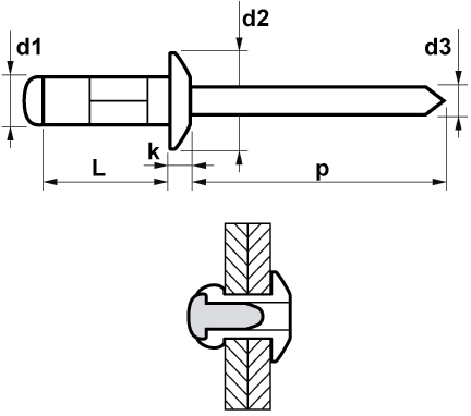 Multitec Blindnieten Flachkopf, Aluminium-Stahl 3,2x16 K:8,5-13