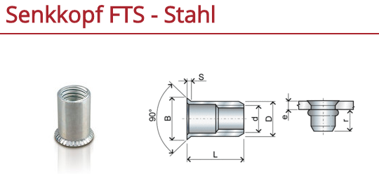 Blindnietmuttern Senkkopf FTS/L, BM-SK-OF-ST Stahl verzinkt M4x13,0 K:3,5-5,0