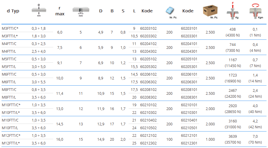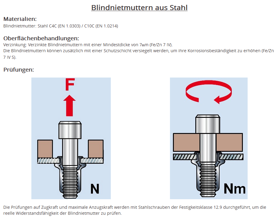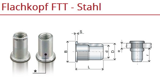 Blindnietmuttern Flachkopf FTT, BM-FL-OF-ST Stahl verzinkt M8x21,5 K:5,5-7,5