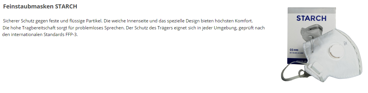 Atemschutzmasken STARCH 12 Stck. mit Ausatemventil, FFP3