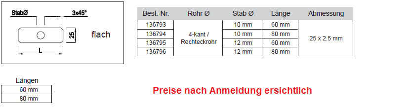 Auflagebleche schmale Ausführung Bohrung, CNS geschliffen 4kt.x60