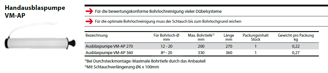 Ausblaspumpe MKT f. Bohrloch ø12-35mm, VM-AP 270