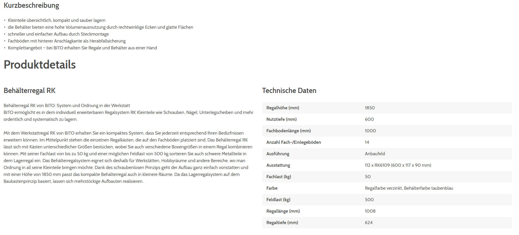 Behälterregal BITO inkl. 112 Regalkästen, Anbauelement verzinkt 1850x1008x624