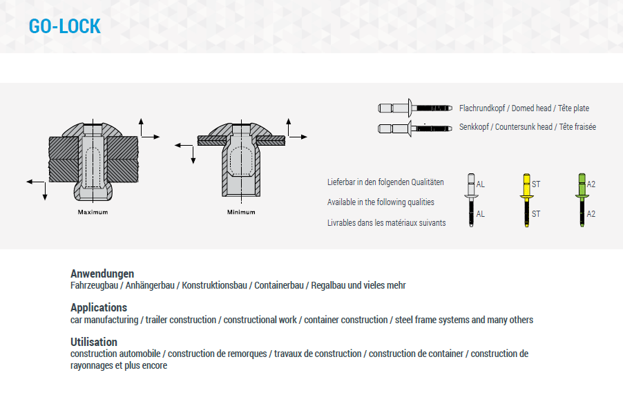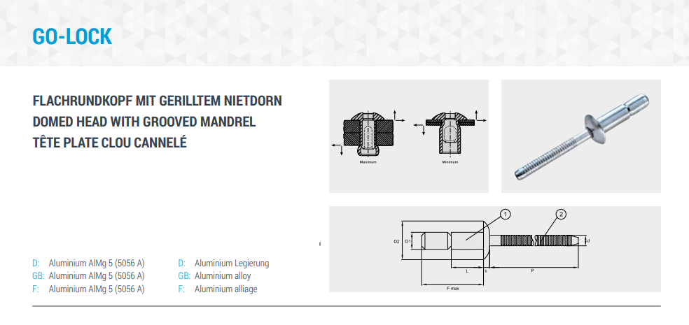 Blindnieten Flachkopf, hochfest, GO-LOCK, Aluminium-Aluminium 4,8x14,5 K:1,8-11