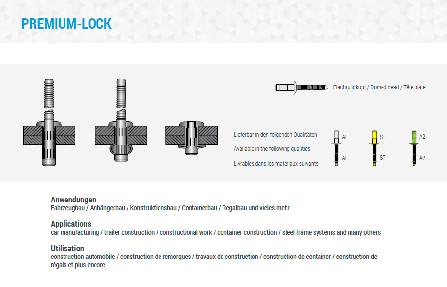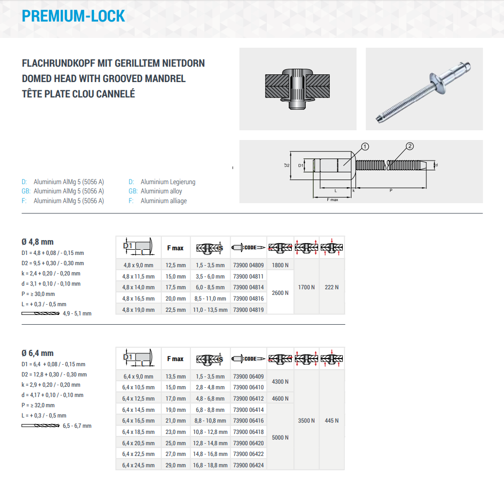 Blindnieten Flachkopf, hochfest, PREMIUM, Aluminium-Aluminium 6,4x16,5 K:8,8-10,8