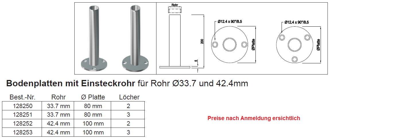 Bodenplatten mit 2 Senklöcher, CNS geschliffen 100x5