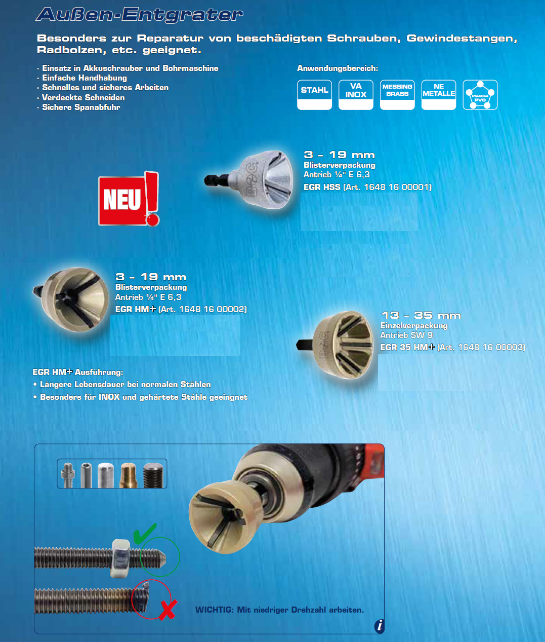 Bohrcraft Aussen-Entgrater, Typ ERG 35 HM+ 13-35mm