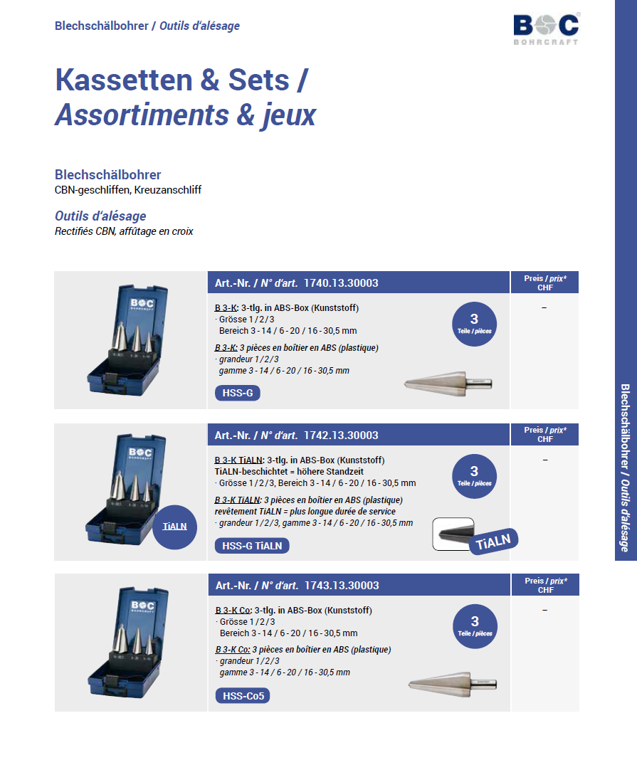 Bohrcraft Blechschälbohrer, kobaltleg. SET 3-tlg., HSS-E-Co5, CBN geschliffen Gr./1/2/3