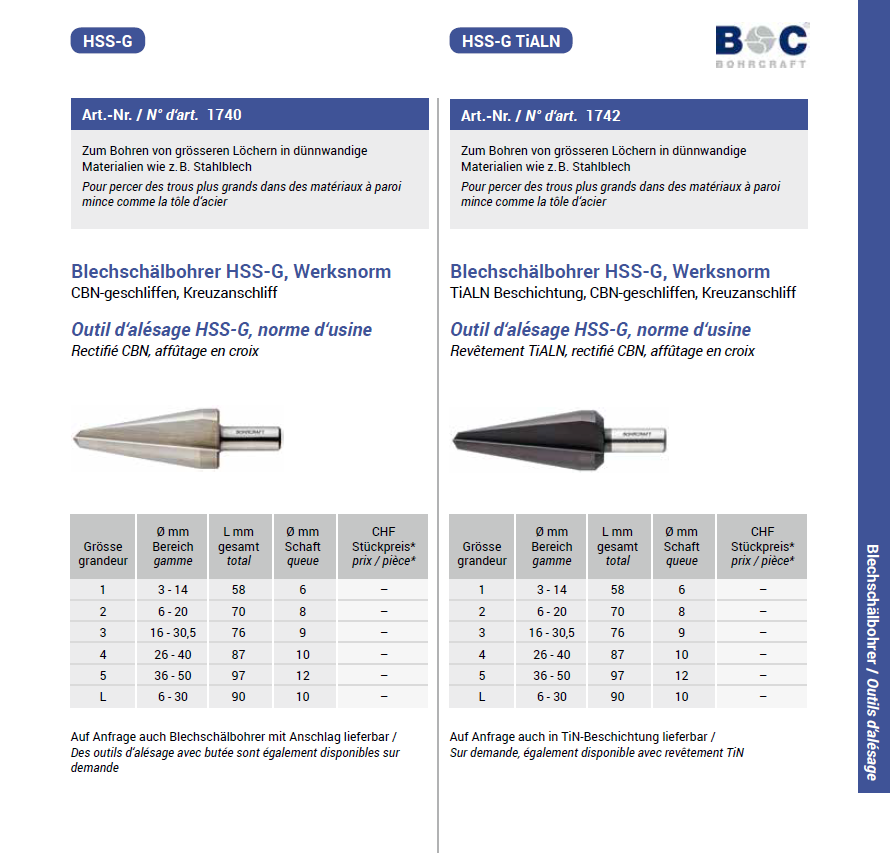 Bohrcraft Blechschälbohrer, TiALN SET 3-tlg., HSS-G, CBN geschliffen Gr.1/2/3
