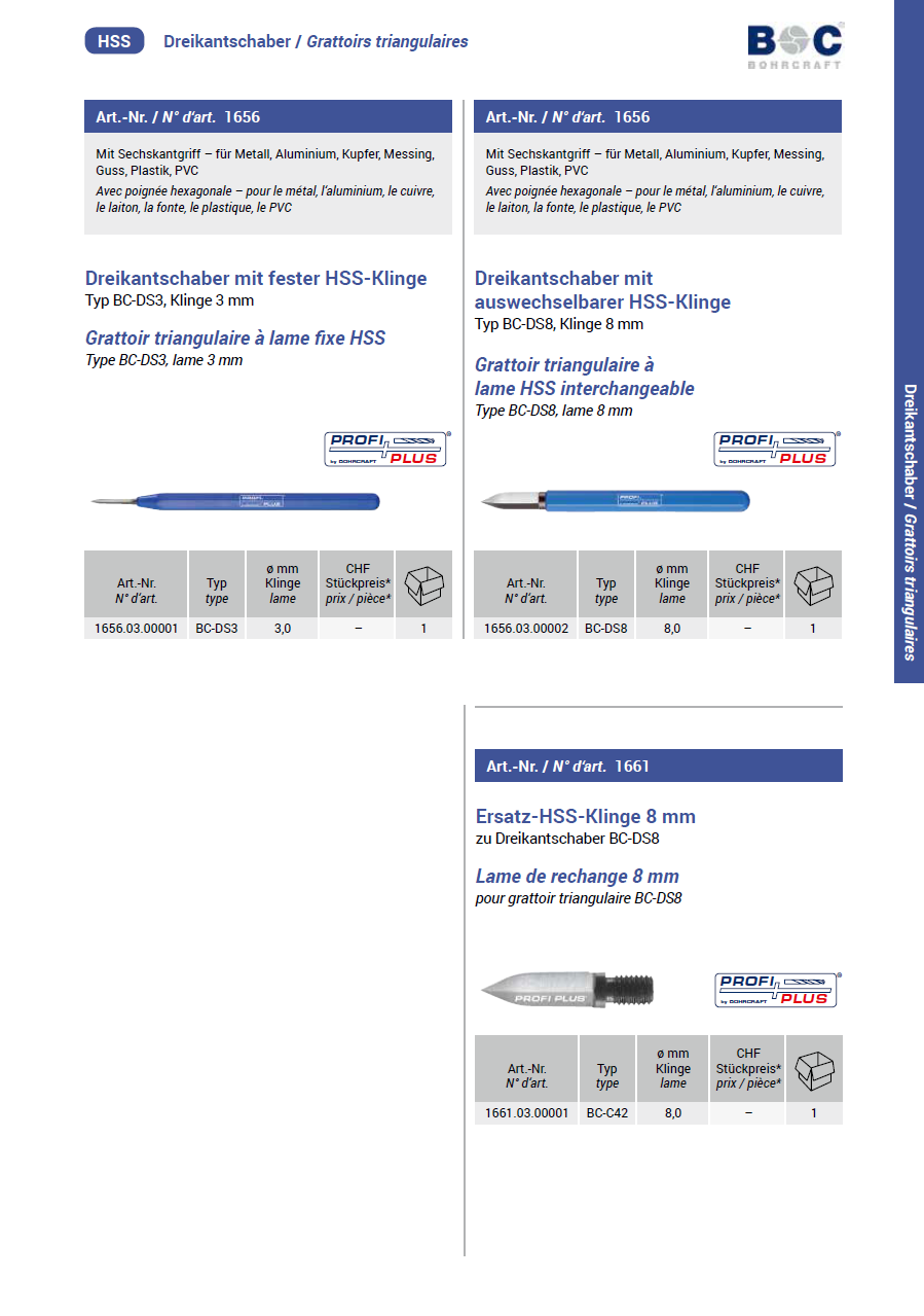 Bohrcraft Dreikantschaber Klinge auswechselb., Typ BC-DS8 HSS 8,0