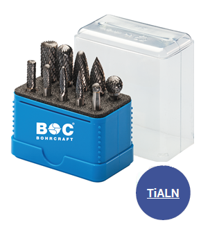 Bohrcraft Hartmetall-Frässtift SET 10-tlg., DIN8033/Typ R 10 TiALN HM
