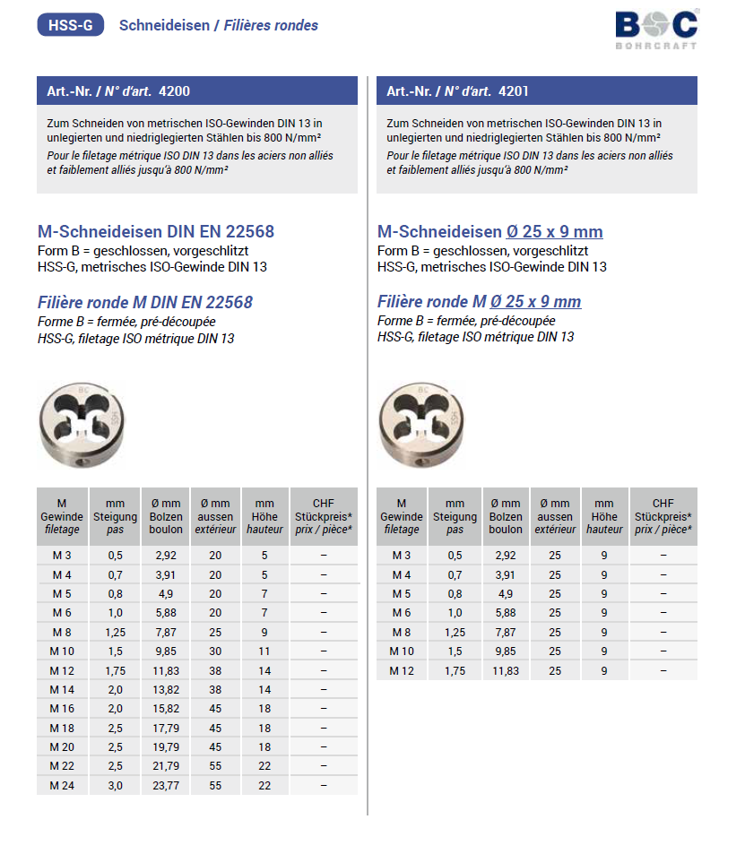 Bohrcraft M-Schneideisen, Form B HSS-G M5x0,8x9