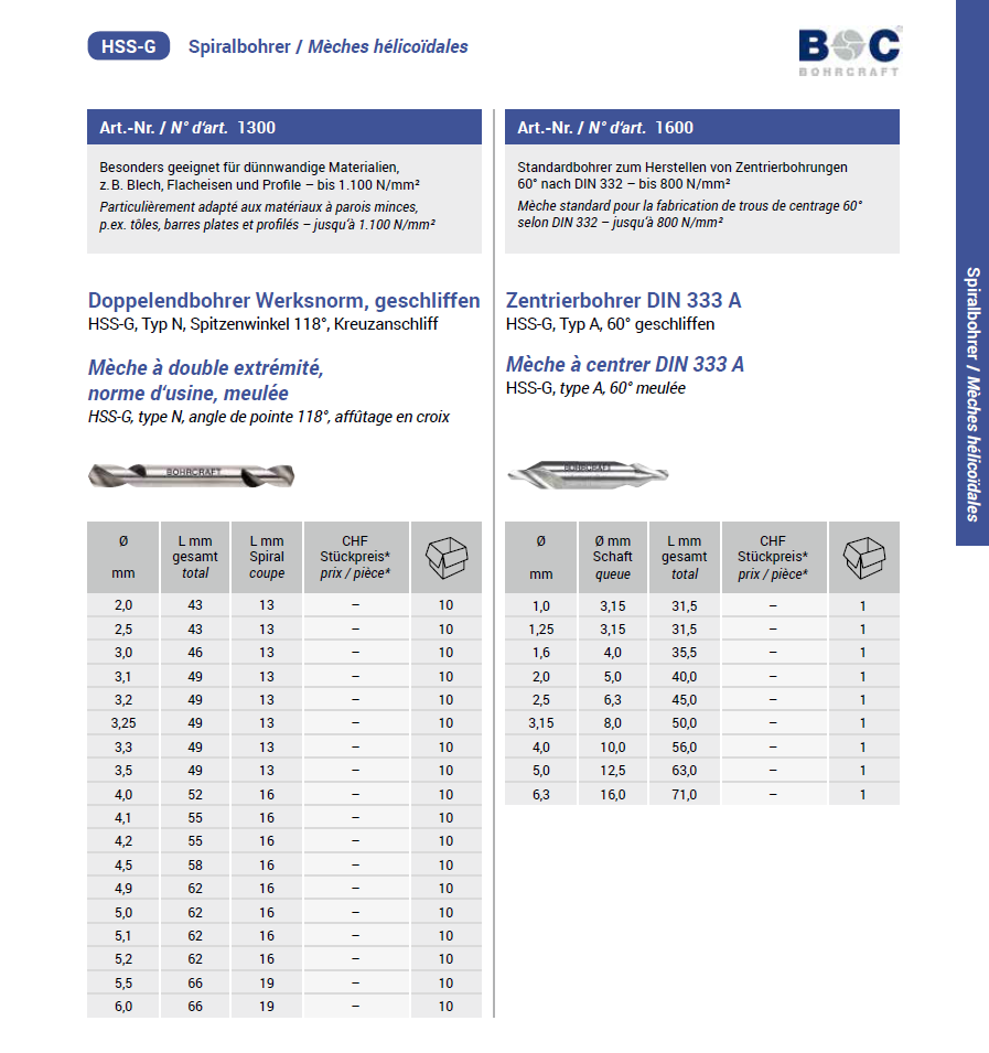 Bohrcraft Zentrierbohrer geschliffen, DIN333/Typ A 60° HSS-G 5,0x63