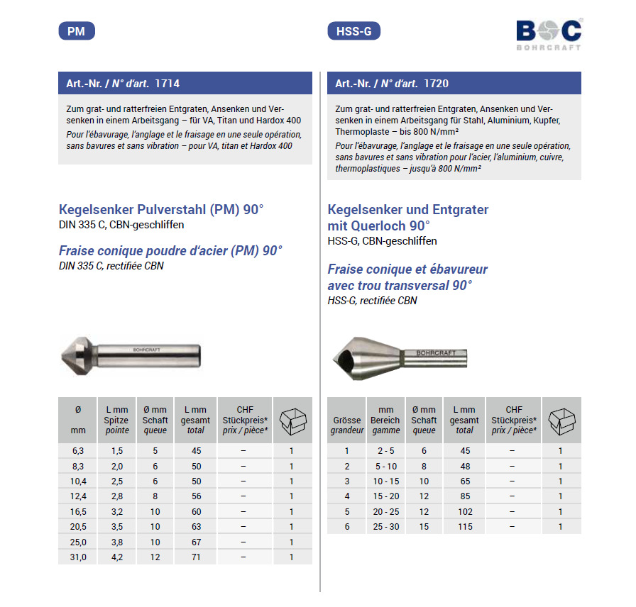 Bohrkraft Kegelsenker und Entgrater m. Querloch, HSS-GCBN geschliffen Gr.6x115