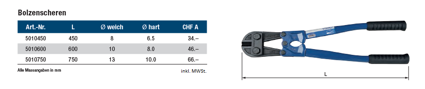 Bolzenscheren STARCH, Stahl, blau lackiert 450mm
