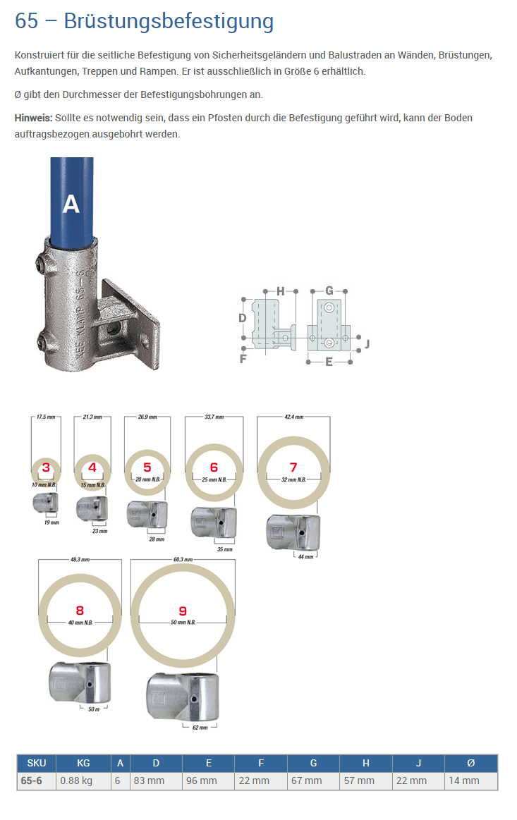 Brüstungsbefestigung Kee Klamp Temperguss, Typ 65-6 feuerverzinkt 1 Zoll