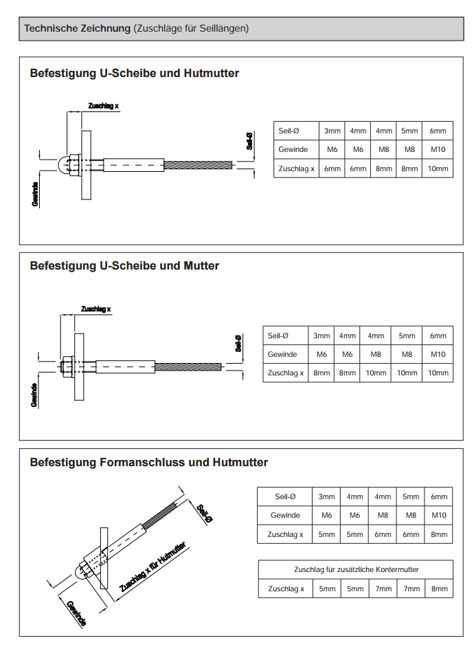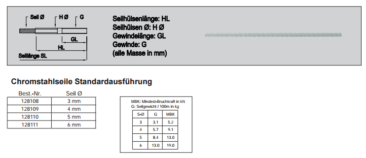Chromstahlseile Standardausführung, 1.4401 6mm