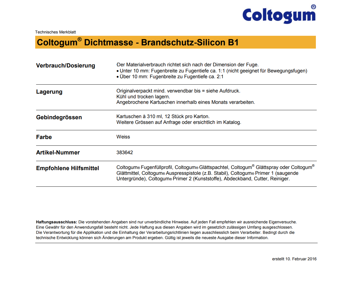 Coltogum Brandschutz Silikon, weiss 310ml