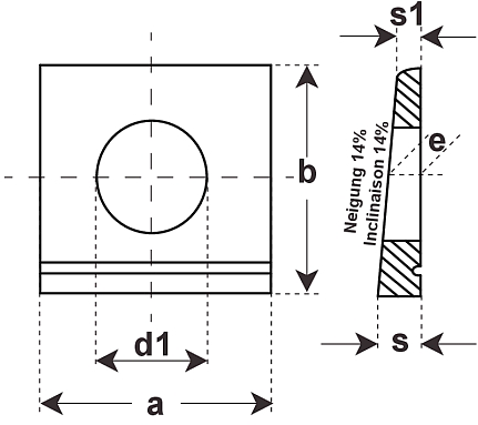 Vierkantscheiben für T-Profile, DIN435 A2 rostfrei M20/22x40x44x9,2