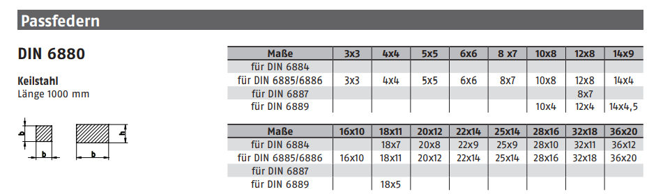 Passfedern Federkeile ohne Anzug hohe Form, DIN6880 C45+C blank 25x14x1000