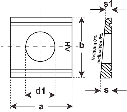 HV-Vierkantscheiben für U-Träger, DIN6918 C45 feuervz. M24