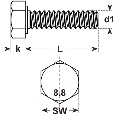 Sechskantschrauben ohne Schaft, ~DIN933 ISO4017 8.8 Stahl blank WW1-2"x40