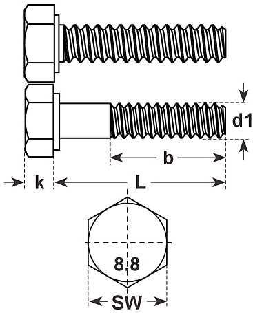 Sechskantschrauben ohne Schaft, ~DIN933 ISO4017 8.8 verzinkt UNC3-8x3-4