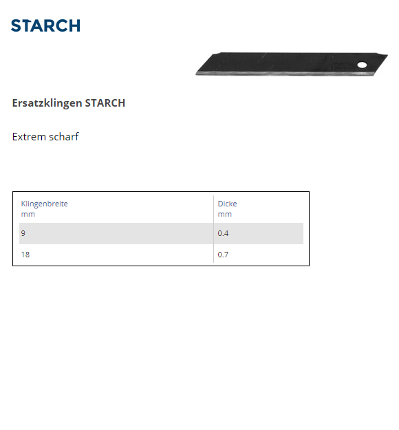 Ersatzklingen STARCH zu Universalmesser, 9mmx0,4 Dicke